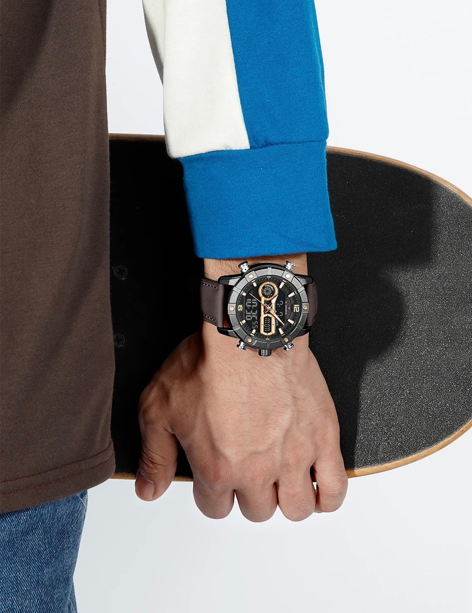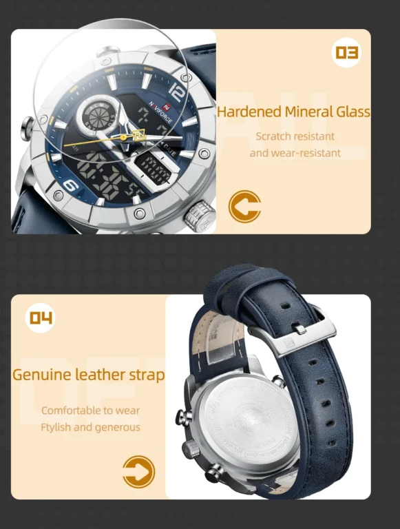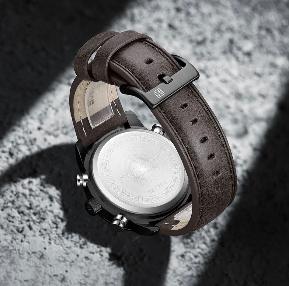 - Band Material Type: Leather Strap